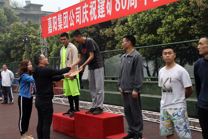 越野赛分男、女4000米个人竞技跑、方阵健身跑、自由健身跑三个项目。各单位男女各报三名选手参加竞技跑前八名的争夺,早上7:30分,随着一声发令枪响,竞技跑的选手们冲出起跑点,经集福桥向白果村叉路口中转点跑去,一路你追我赶,经受住耐力和体力的考验,最终决出前八名。男子组冠亚季军由保卫部宋伟、机关黎发强、综合服务公司龙安明获得,嘉阳煤矿粱正会、综合服务公司邓琼、川投峨旅公司王雪梅则夺得女子组前三名。随即,各单位组成方阵列队入场,他们高举旗帜,高呼“我运动、我健康、我快乐”“振兴嘉阳、再创辉煌”等口号精神抖擞地入场。集团公司党委书记、董事长杜勤,总经理范勤英分别为男子组和女子组前八名颁奖。工会主席钟卫旗在启动仪式上作动员讲话,对公司多年来的文体活动开展情况进行了回顾,并对今年建矿80周年健身活动作出了安排,倡导大家多运动爱运动。由集团公司党委书记、董事长杜勤宣布庆祝建矿80周年暨全民健身活动正式启动。各单位方阵依序开始起跑,汇入到自由健身跑的泱泱人流中。