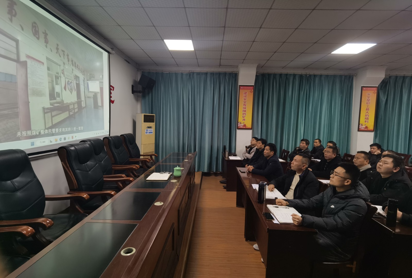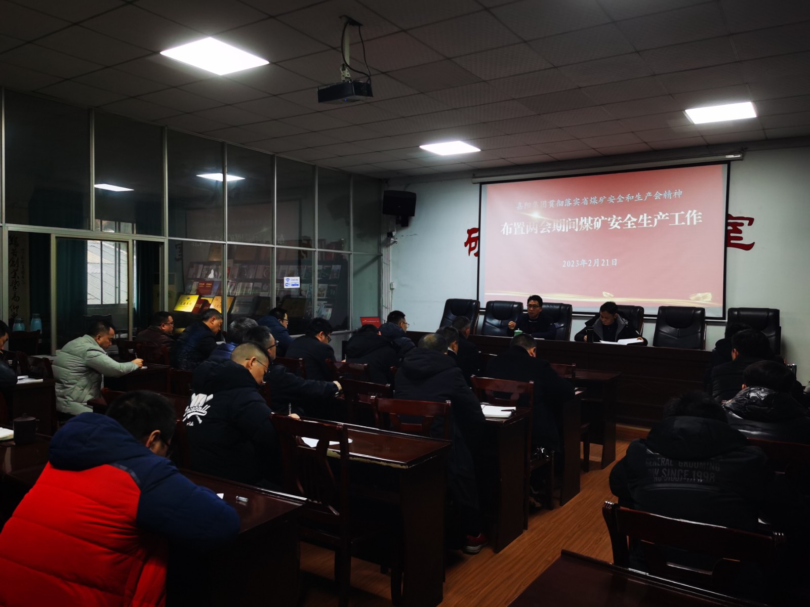 会上,学习传达了省厅安全专题视频调度会精神,针对近期重点工作、关键环节和细节,作了分析研判和安排部署。副总经理王维洪强调,全国“两会”召开在即,各级安全监管部门都立即作出了全面动员,监管人员将下沉企业,采取暗查暗访、随机抽查等方式,对全省各地落实安全防范责任和防范措施等情况进行督促检查,煤矿各级管理者要充分认识做好全国“两会”期间安全防范工作的重大意义,强化防范化解重大安全风险责任落实,严格落实党政领导干部安全生产责任制规定,从严推进各项安全监管工作,积极营造安全稳定的良好氛围。要主动配合上级部门做实煤矿复工复产和岁末年初重大隐患专项检查;公司驻矿专班和煤矿要做实蹲点检查工作,强化风险评估和研判,科学制定整改措施,加强现场管控,督促现场隐患清零工作;煤矿管理团队要有政治敏锐性,要树立“讲政治、守规矩”的工作作风,坚决贯彻上级安全生产要求,层层抓落实,确保安全万无一失。