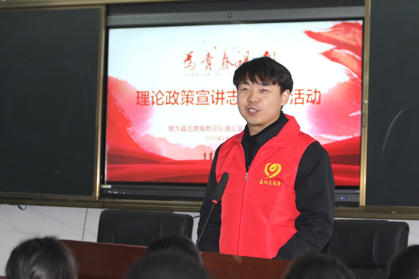 犍为县志愿服务总队理论宣讲志愿服务分队志愿者沈忱以《用科技 为生命护航》为题,讲述了嘉阳煤矿数十年的生产工艺变迁,从原始的手工挖煤到危险的炮采挖煤,再到现在安全高效的智能化综合采煤,用鲜活的案例,生动阐释了习近平总书记在二十大报告中提出的“要面向人民生命健康,加快实现高水平的科技自立自强”的重要指示精神,并鼓励在座的所有学生,要好好学习,将来都成为科学家为祖国多做贡献。