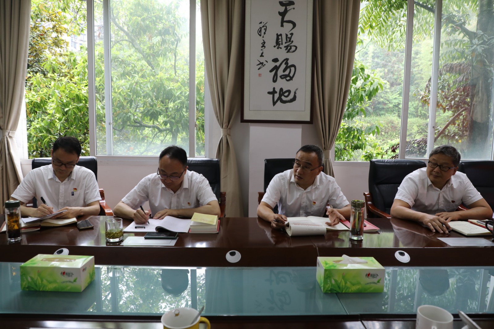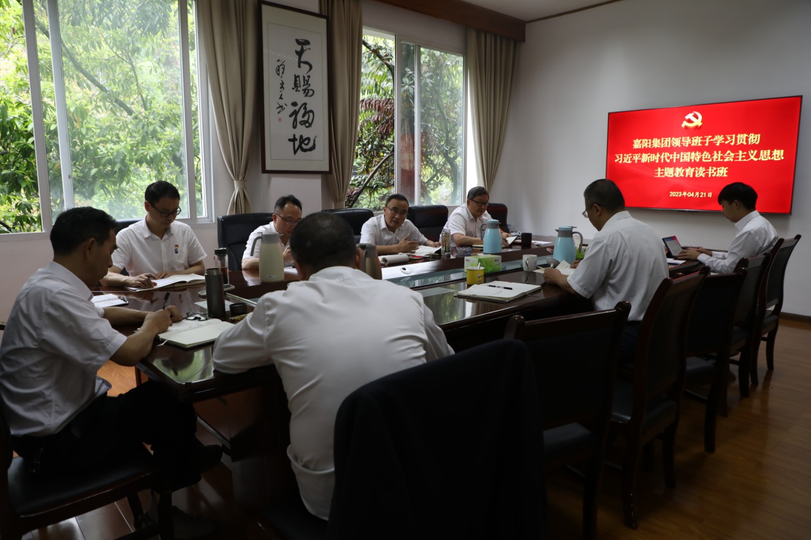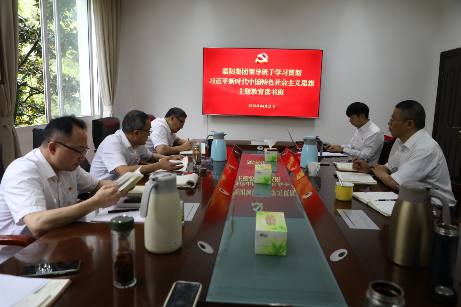 4月21日,德赢(中国)领导班子主题教育读书班开展学习交流,领导班子成员交流习近平新时代中国特色社会主义思想的学习心得体会,党委书记、董事长杜勤讲话。