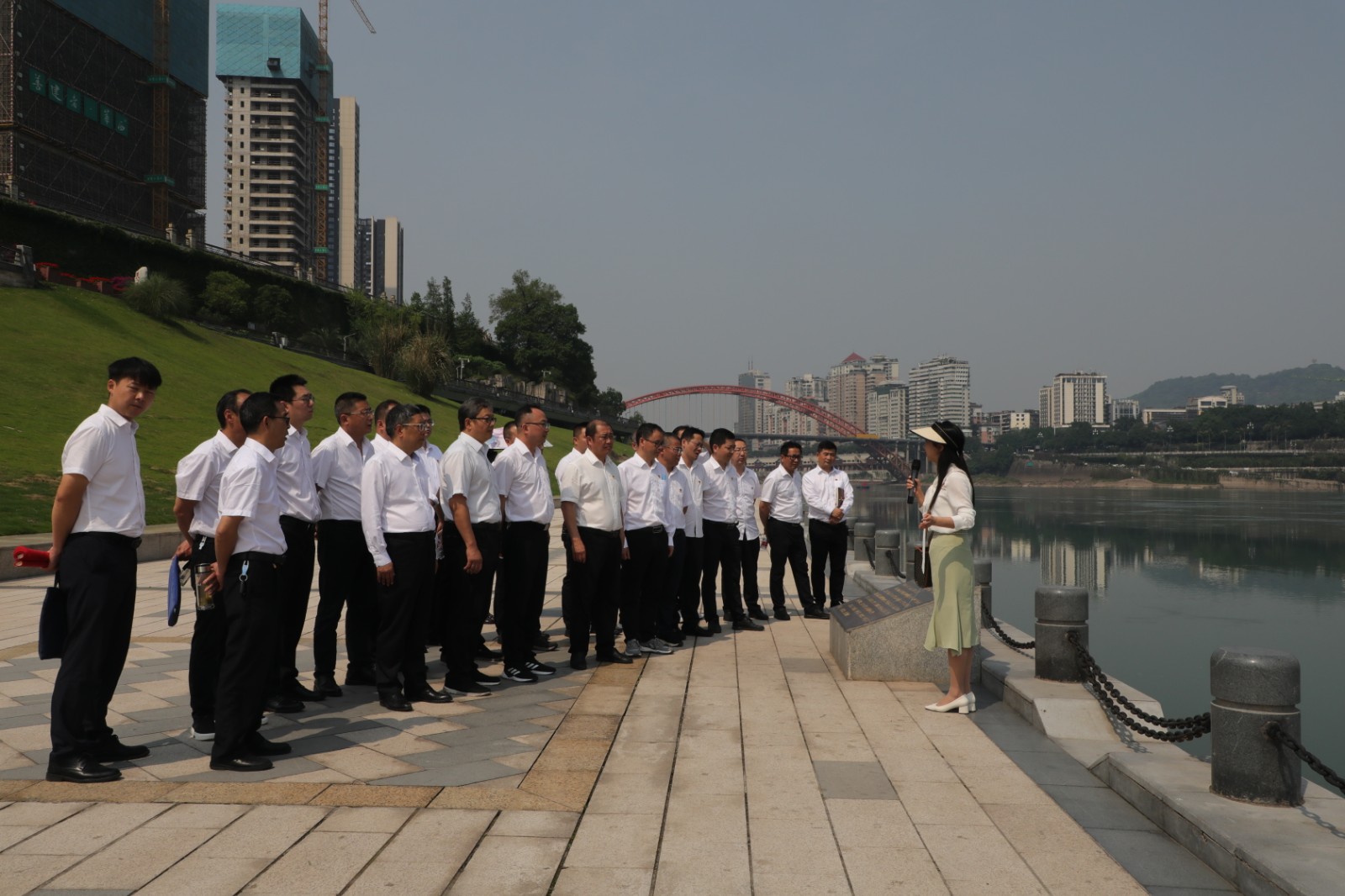 在三江口,两岸绵延至远的亲水步道,环境优美的长江公园,满目含翠,鸟翔鱼跃,水青、岸绿、景美,一幅人与自然和谐共生的动人画卷徐徐展开,“共抓大保护、不搞大开发”的生动实践呈现眼前。学员们聆听宜宾市委党校副教授廖艳现场讲述,了解习近平总书记在三江口考察长江流域生态修复保护、禁捕退捕等情况时的真实场景,身临其境感悟习近平总书记关于“绿水青山就是金山银山”的发展理念,深刻领会“筑牢长江上游生态屏障,以酿美酒的标准守护一江清水”的重要指示和殷殷嘱托。