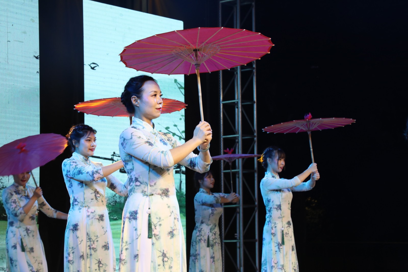 晚会在舞蹈《中国梦美丽的梦》中拉开序幕,整场演出形式多样,内容丰富多彩,舞蹈、表演唱、相声、朗诵、三句半、快板等轮番上演,歌声婉转动听,舞姿优美动人。《彝家打歌》《苗岭飞歌》《大中国》等节目生动展现了新时代家乡的变化,表达了大家对祖国的无限热爱和深情祝福;《山河无恙在我胸》《守护》《我心中的红》等展现了全体职工一心向党、踔厉奋发、奋勇向前的精神面貌;舞蹈《秀水泱泱》传承红船精神、庚续红色血脉,唤起了同志们对革命烈士的敬仰之情;快板《筑梦未来》热情歌颂党、礼赞新时代,展现矿山智能化建设、绿色转型带来的发展变化,激发了嘉阳儿女团结向上,永远跟党走,奋进新征程的信心和决心;三句半《小芭蕉·新征程》、相声《火哥与痴哥》让晚会气氛更加热闹,不断把晚会推向高潮。