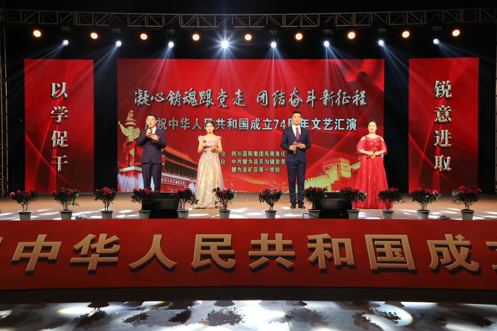 为热烈庆祝中华人民共和国成立74周年,喜迎中秋、国庆双节。9月27日,集团公司举办“凝心铸魂跟党走 团结奋斗新征程”迎中秋庆国庆文艺晚会,营造欢乐祥和、热闹喜庆的节日氛围,抒发爱党爱国情怀。