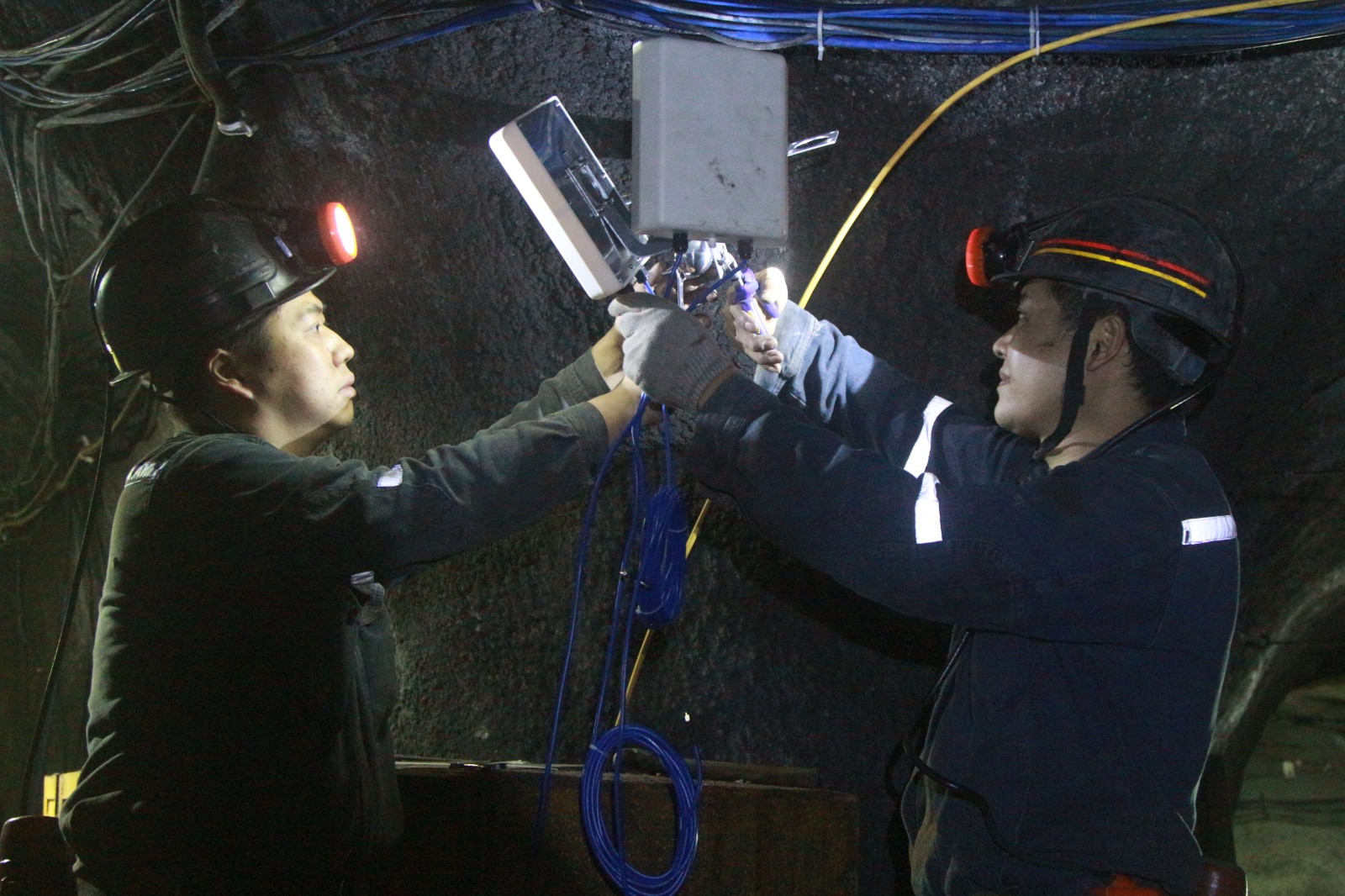 近日,嘉阳煤矿5G通讯入井示范项目完成采煤系统及沿线设施设备安装,5G防爆手机通话和视频测试信号稳定可靠,第二阶段安装工作正在加速推进。