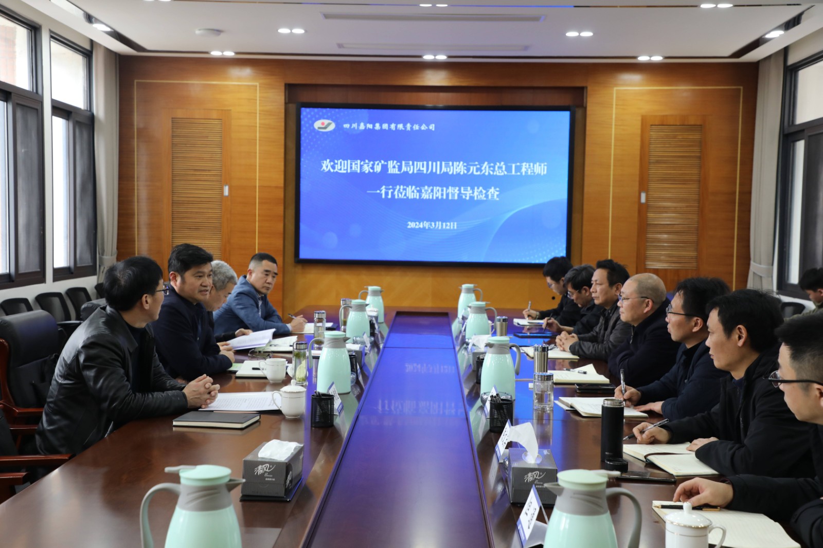 3月12日,国家矿山安全监察局四川局总工程师陈元东带队督导检查嘉阳煤矿春节后复工复产情况,并调研指导煤矿智能化建设工作。