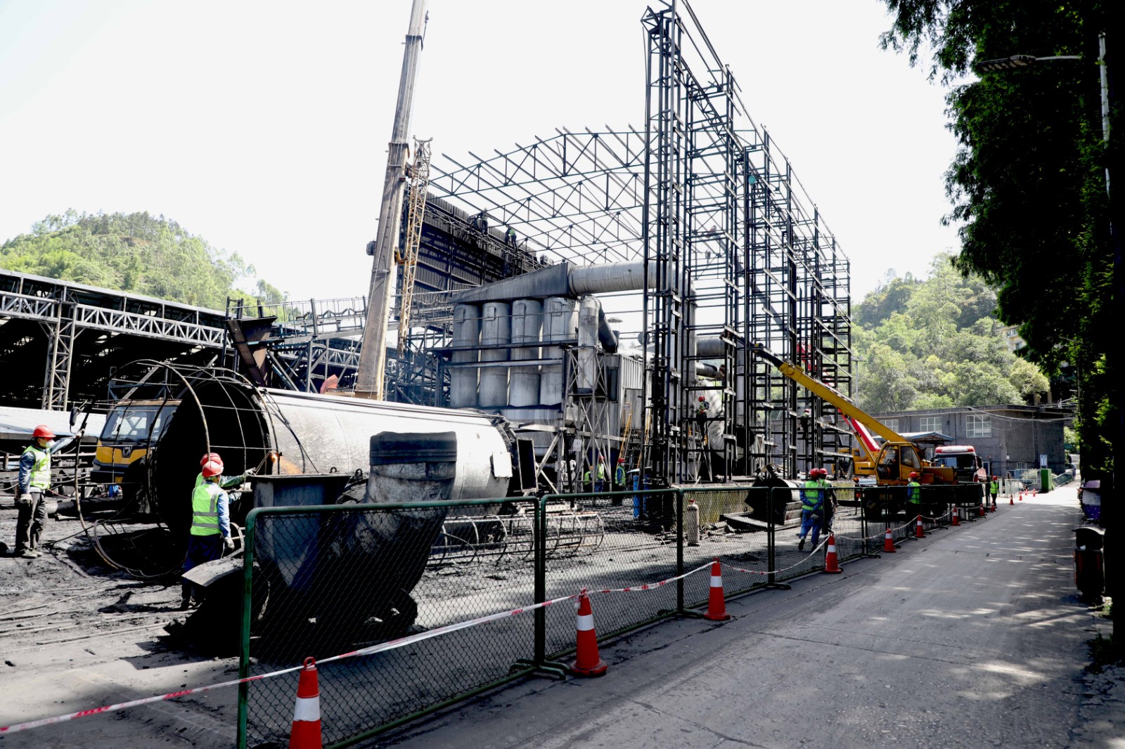 嘉阳煤矿风选设备撤除工程由机电分公司负责,在经过前期物资准备、技安措施制订、安全学习后,相关人员于5月7日进场开始施工。施工现场设置了安全警戒线、配备了专职安全员,采用大型吊车对风选设备零部件进行固定,然后由电氧焊工进行切割分离,最后由吊车将零部件安全放置地面。撤除工程预计5月20日前完成。