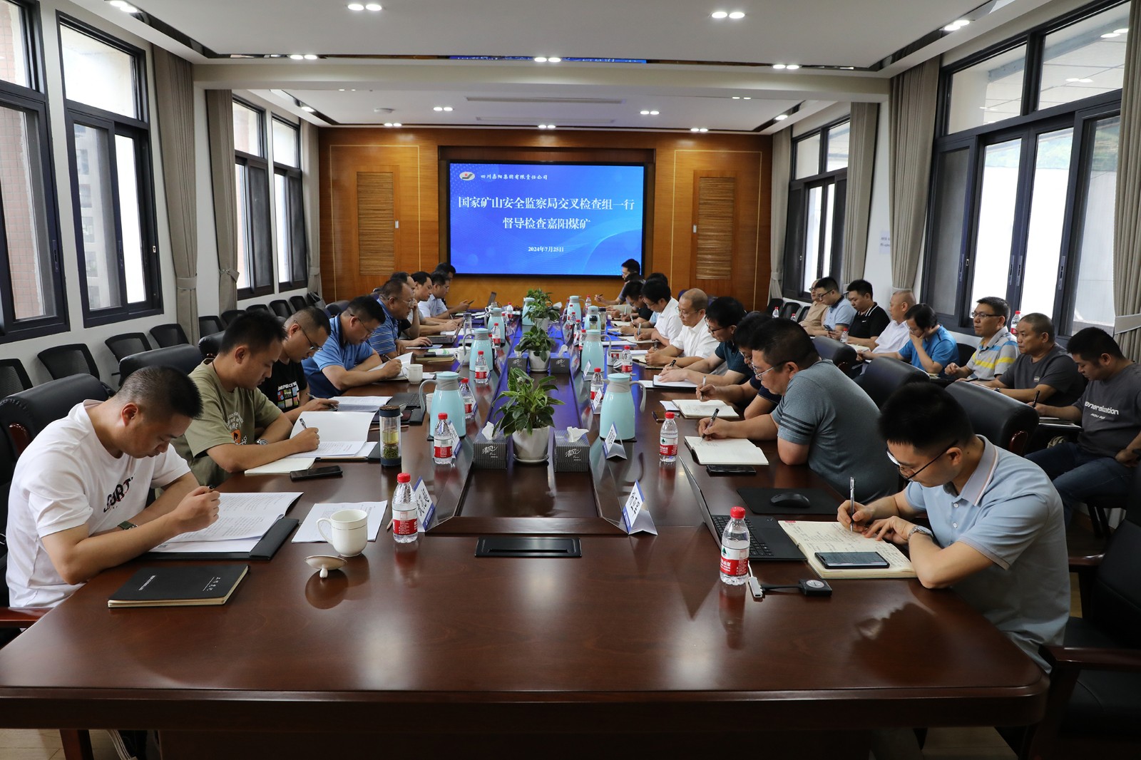 7月25日至26日,国家矿山安全监察局督查组、国家矿山安全监察局云南局二级巡视员张启坚一行到公司对嘉阳煤矿“八条硬措施”、治本攻坚三年行动及汛期等相关工作开展情况进行专项监督检查。国家矿山安全监察局四川局副局长唐渔海,四川省应急管理厅二级巡视员张学广、乐山市应急管理局局长刘杨等陪同检查。