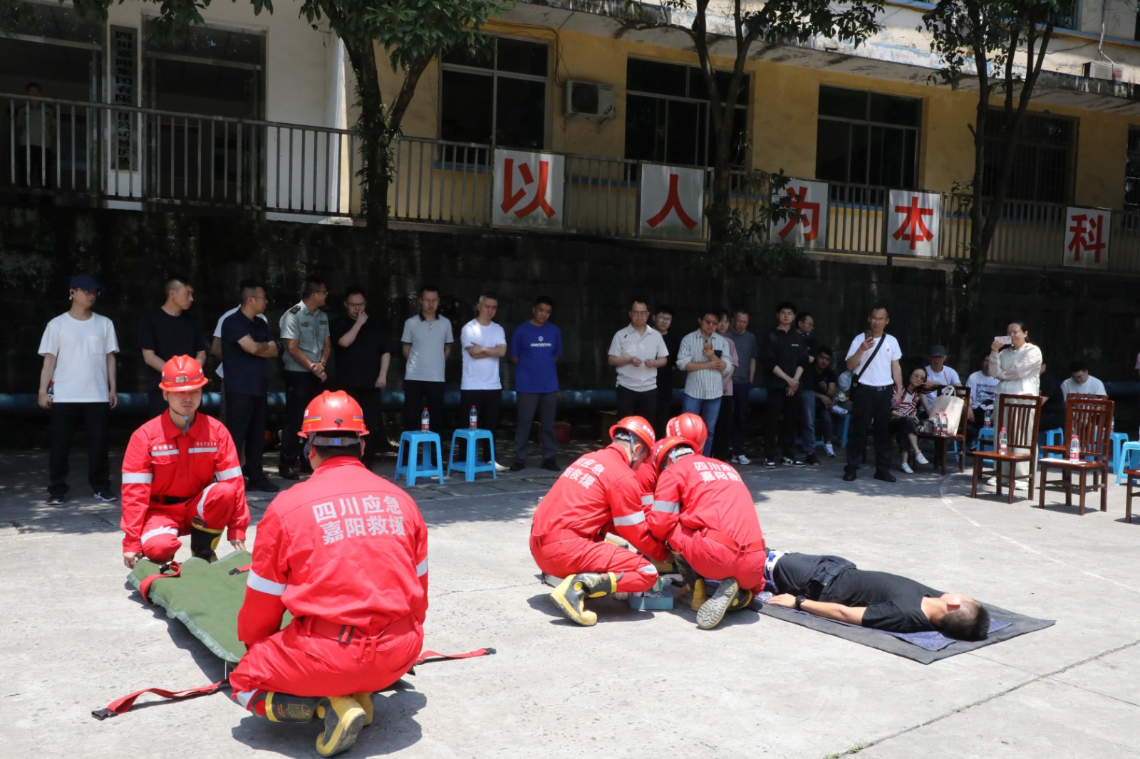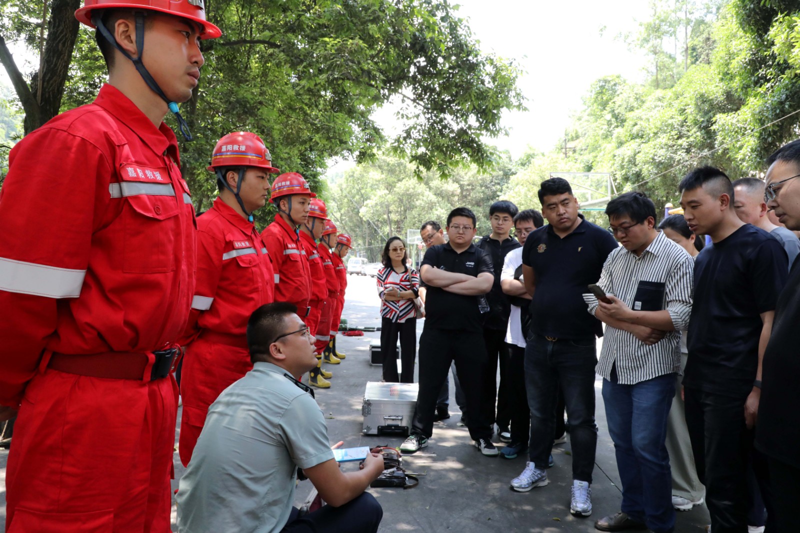 观摩团观看了集团公司企业宣传片《矿山脊梁》、嘉阳矿山救护队宣传片《生命之光》,实地察看了矿山救护队生活训练场所,装备器械管理场所,通过询问了解矿山救护队机构设置、组织架构、管理模式、制度办法、设施装备以及日常训练等相关内容。随后,矿山救护队员们向观摩团展示了自救器、苏生器、破拆、液压起重、灾区电话等仪器操作使用,模拟演示了矿山救护队进入灾区现场,开展止血、包扎、固定、搬运等创伤急救环节,全过程展示了闻警出动、战前检查、高倍数泡沫灭火机灭火、氧气瓶互换、总结讲评的综合演练。队员们饱满的精神状态和娴熟的操作技艺获得了观摩团高度称赞。大家表示,此次观摩学到了很多实用的知识,进一步加深了对非煤矿山应急救援队伍组建、日常训练管理、综合实战演训的认识。