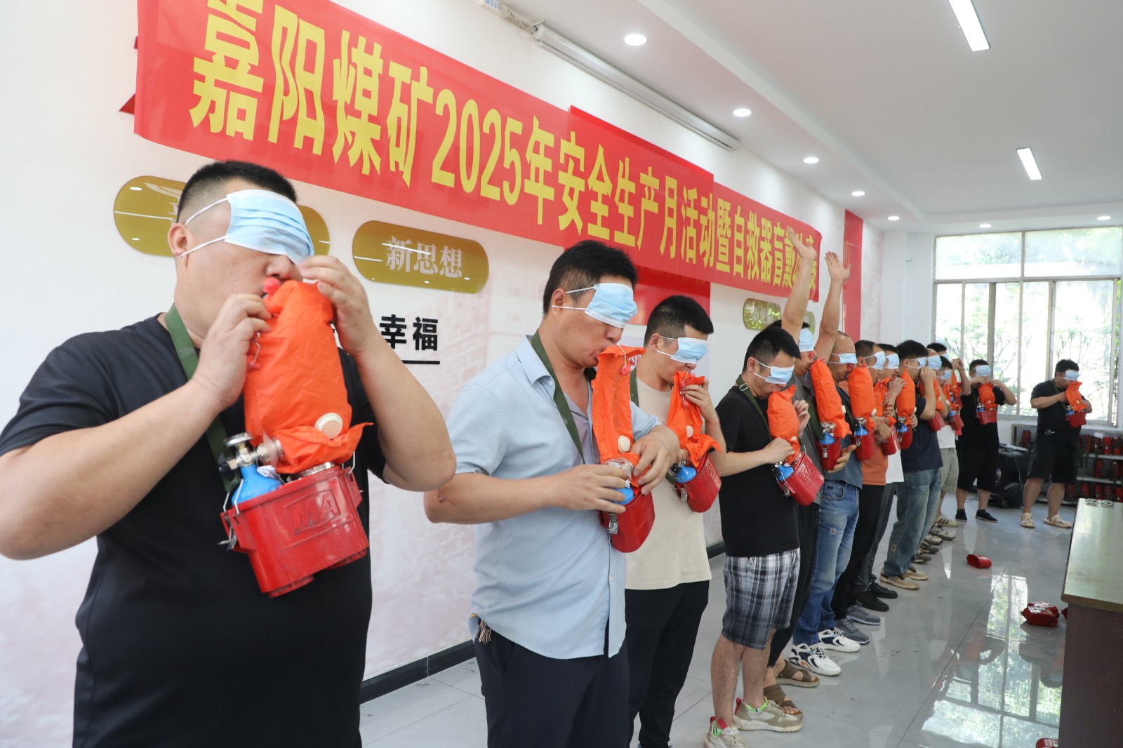 据悉,嘉阳煤矿工会以“安全生产月”为契机,大力加强自救器操作训练,通过班前会、安全周会等平台反复组织职工练习盲戴操作,力求让每一位职工熟练掌握安全技能,夯实基本功。