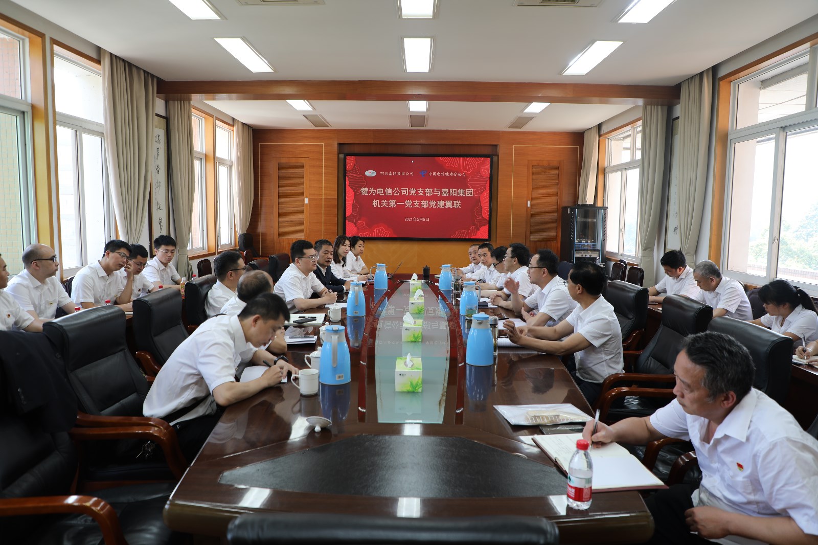 德赢(中国)党委副书记谢建国向犍为电信分公司党支部的到来表示欢迎。希望今后双方多加强沟通与协作,特别是在企业信息化建设方面电信公司能继续给予强有力的支持,共同推进企业高质量发展。观看嘉阳宣传片后,党群工作部部长姚建军介绍了企业的历史沿革,翁文灏、孙越崎、汤子珍三位创始人的生平,着重讲述了孙越崎先生为中国能源事业的发展、新中国建设作出的卓越贡献,深刻解读了嘉阳燃烧自己、照亮世界的“燃烧精神”的特质内涵。