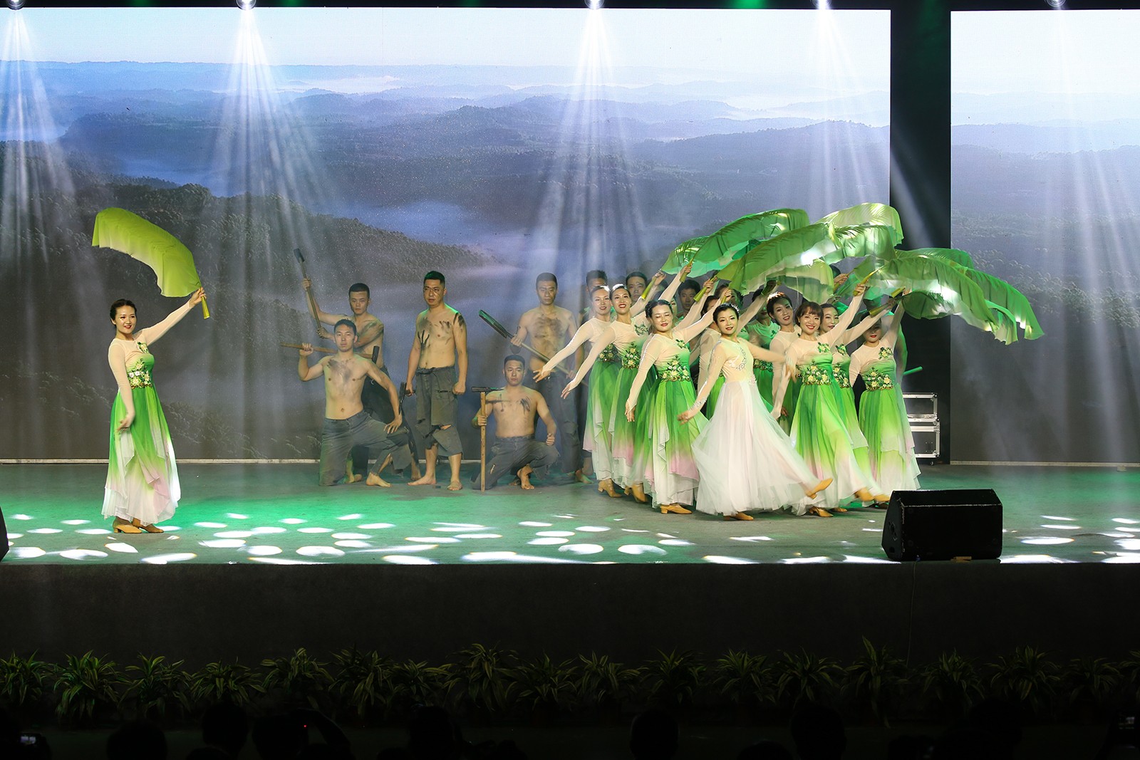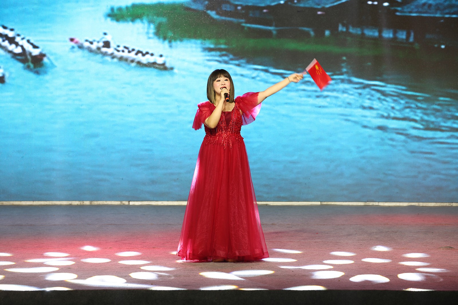 晚会在红歌大联唱中拉开帷幕,观众们随着节奏挥舞着手中的小红旗、荧光棒,整个体育场汇聚成了一片闪耀的红色星海。舞蹈《再唱山歌给党听》《领航中国》、合唱《红旗飘飘》《跟着共产党走》、三句半《小芭蕉说党史》、乐器合奏《盛世国乐》等16个精彩节目轮番上演,为现场观众带来一场视觉盛宴和精神洗礼。诗朗诵《生命之花》深情并茂地讴歌了中国共产党百年风雨历程中的英雄、先锋以及他们的献身精神,赢得了观众阵阵掌声。一首激越高昂的女声独唱《我和我的祖国》表达了对祖国的诚挚祝愿和对美好生活的无限期盼。大灾面前有大爱,舞蹈《激流勇进》再现嘉阳志愿者团结一心、众志成城抗洪救灾,为犍为“8.18”灾后重建贡献嘉阳力量的动人场景。新时代征程无限光明,强国使命催人奋进,舞蹈《燃烧吧,嘉阳》将煤矿“燃烧精神”展现的淋漓尽致,焕发出独特的时代魅力,传承红色基因,坚定理想信念,凝聚奋进力量,激励嘉阳儿女砥砺前行再出发。