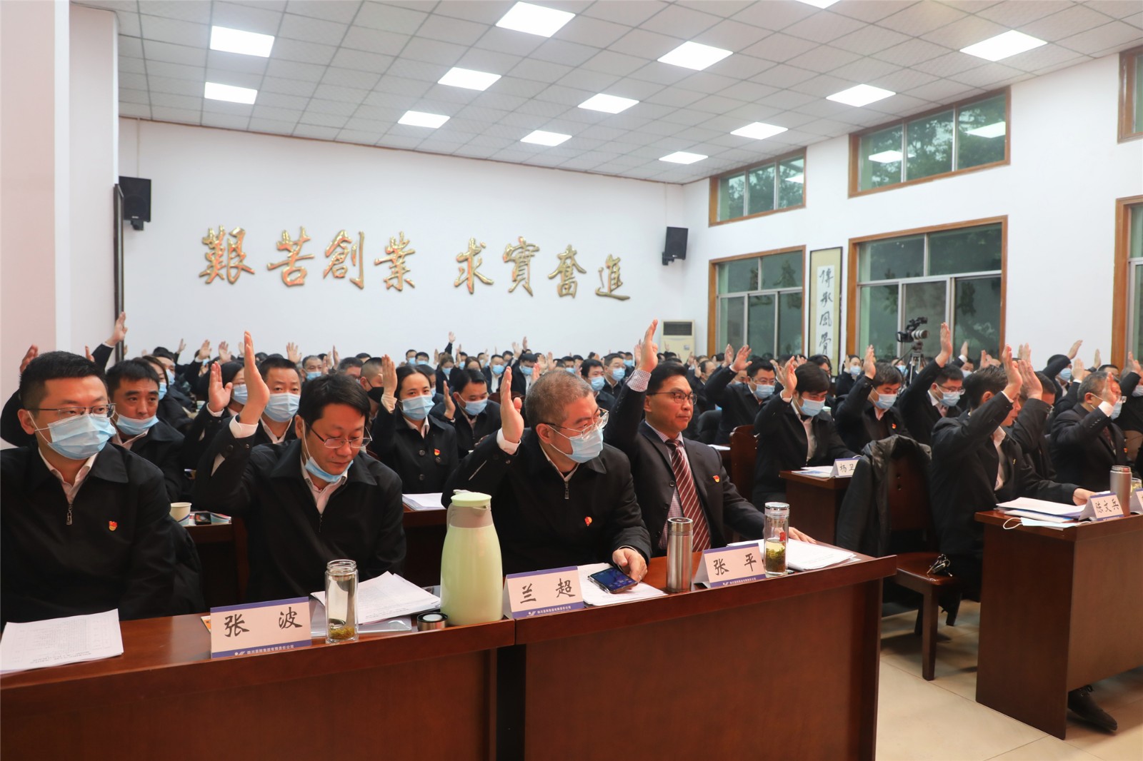大会号召:公司全体职工要在党委的坚强领导和公司经营班子的带领下,坚定信心,奋力拼搏,以一往无前的奋斗姿态和优异的工作成绩迎接党的二十大召开!