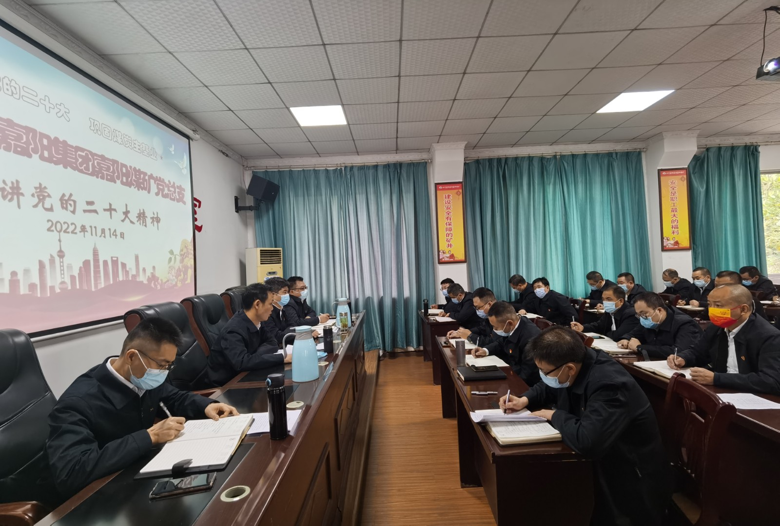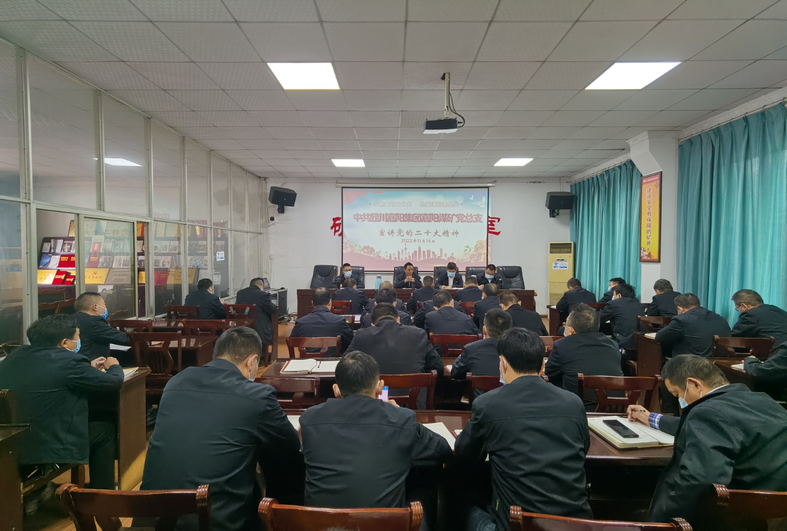 11月14日,嘉阳煤矿党总支开展“聚焦党的二十大,做强做优煤炭主业”主题宣讲,矿党总支委员、分管矿长进行了交流发言,队站党政工负责人聆听了宣讲。