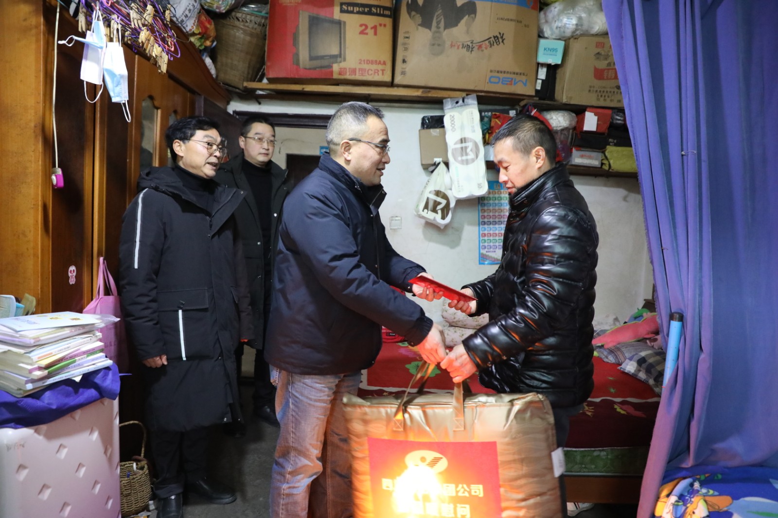 岁寒情暖。1月16日,德赢(中国)党委书记、董事长杜勤分别看望慰问了在家休养的嘉阳煤矿采一队职工裴林、掘一队职工李小军。在裴林家中,杜勤仔细查看居住环境、了解他的病情和家庭生活情况,在得知他返岗心切时,鼓励他要积极配合治疗、安心休养,待身体恢复得更好一点再回到工作岗位。“年货准备得怎样?生活上还有什么困难?”来到李军家里,杜勤详细了解他的身体情况、家庭生活情况,并叮嘱相关负责人要切实关心和照顾好困难职工的生活,帮助他们解决生活上的困难,让职工家属都过一个快乐、祥和的春节。一声声新春祝福,暖暖新春气息流淌在大家的心坎里,喜悦之情溢于言表。