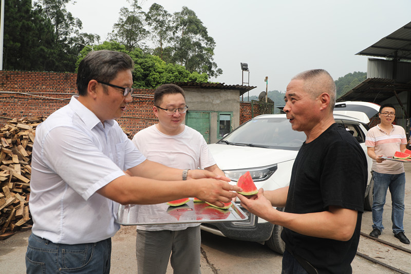 8月6日,副总经理詹本远、金大钧带领机关四支部的党员前往物资供销公司搬运改制班、炸药库、库管班,向坚守岗位的职工送上西瓜和茶叶,表达诚挚的关心和问候。物资供销公司承担着全公司生产物资的供应,特别是搬运改制班干的都是体力活,工人师傅们一大早就忙个不停,将一车车材料装车运送至井口,晒得黝黑的脸颊和手臂上挂满了汗珠,汗水浸透了身上的衣服。“班组为了我们的安全健康考虑尽可能把活路安排在上午,早上地面热气还没那么高,能多干就争取多干点……”质朴的话语彰显出工人吃苦耐劳的本色。为辛劳的工人师傅们递上一块西瓜,让他们感受片刻清凉,真切地表达一分敬意。一行的两位公司领导每到一处都不忘叮嘱工人们在作业时一定要认真做好安全措施,要时刻把健康和安全放在第一位,同时要求主管单位切实做好劳动保障和防暑降温工作。