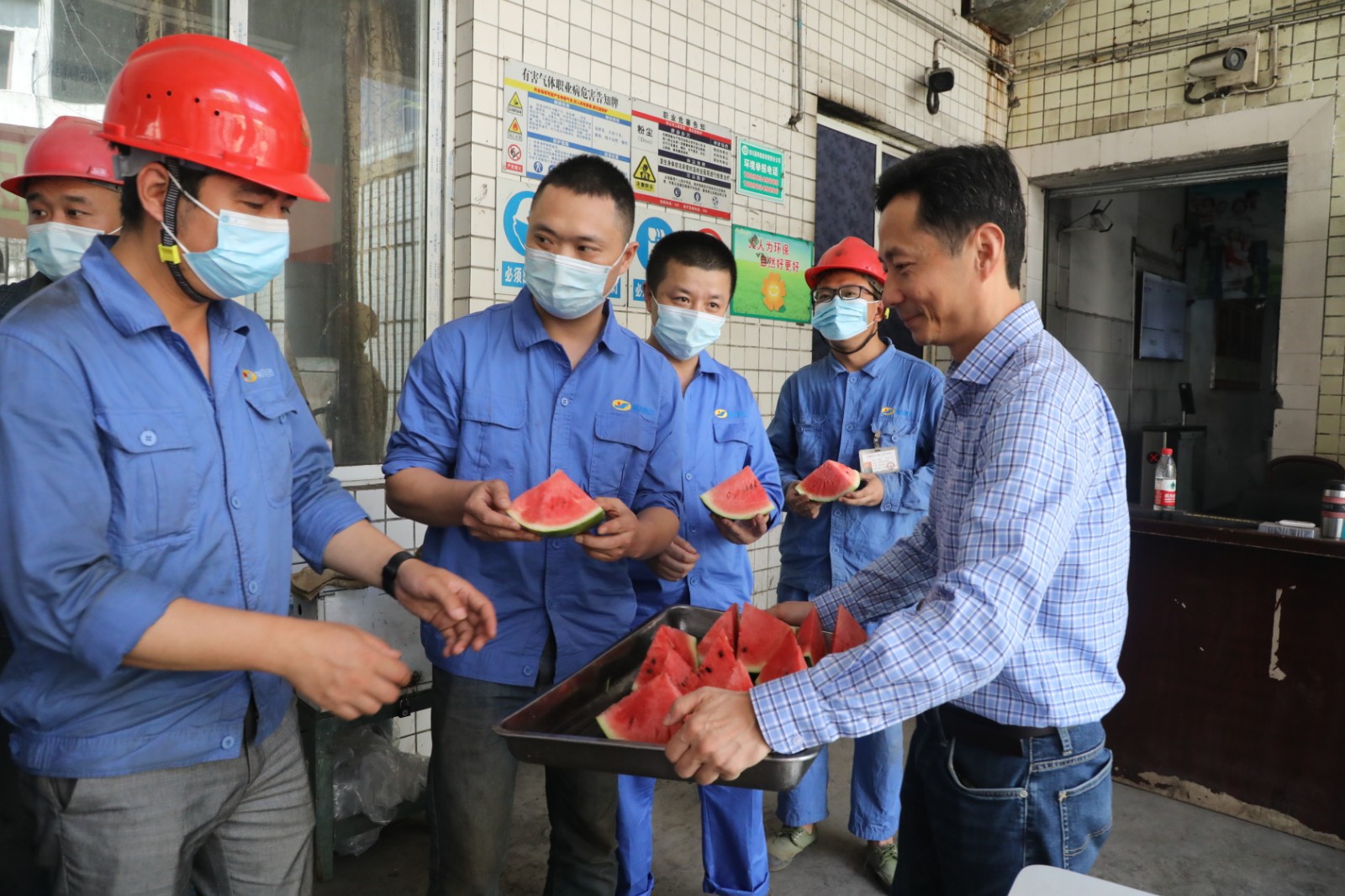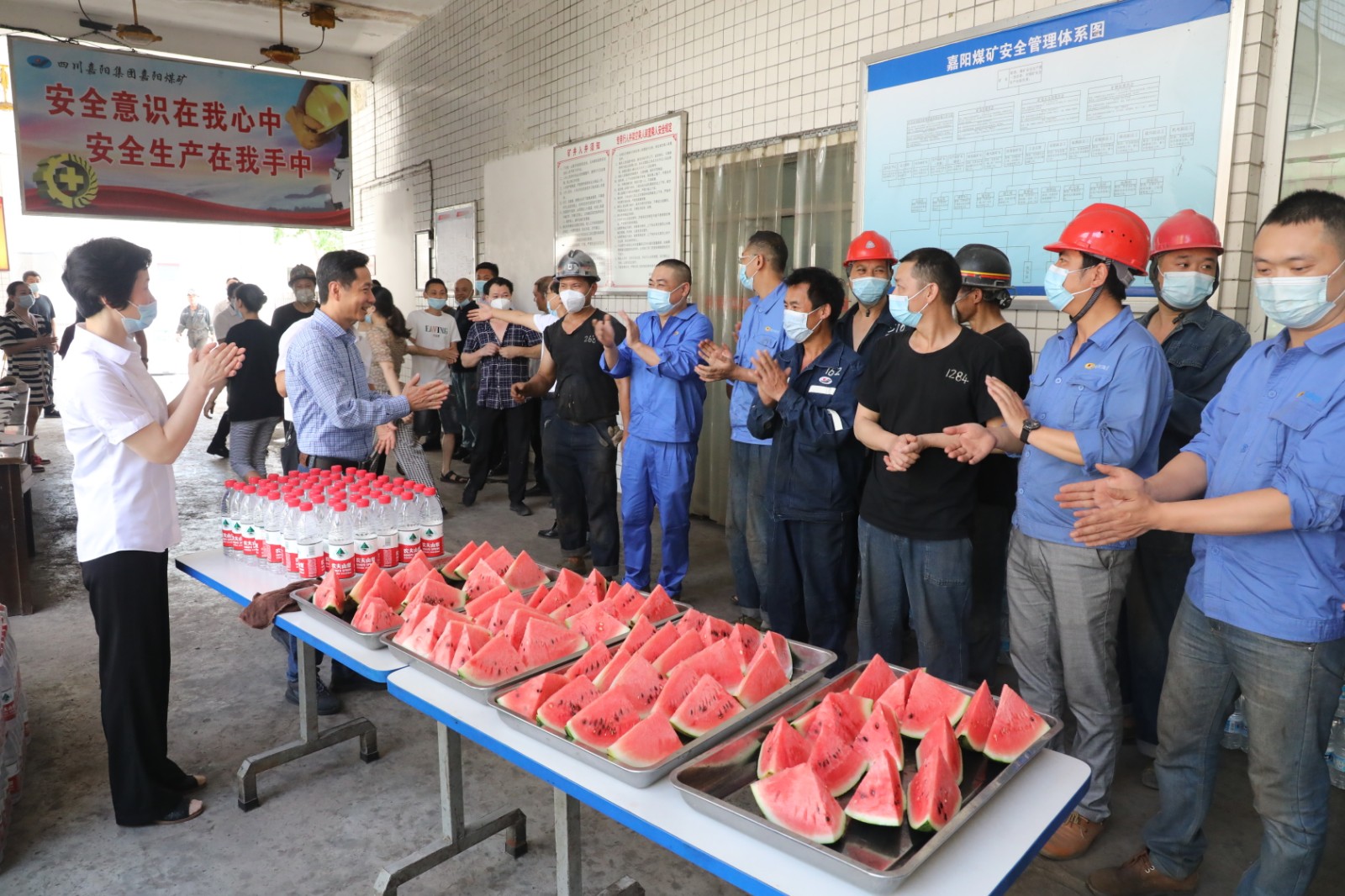 6月7日,川投集团副总经理张昊、工会副主席白翠红一行到嘉阳看望慰问一线高温岗位职工,为他们送上清凉和关怀。