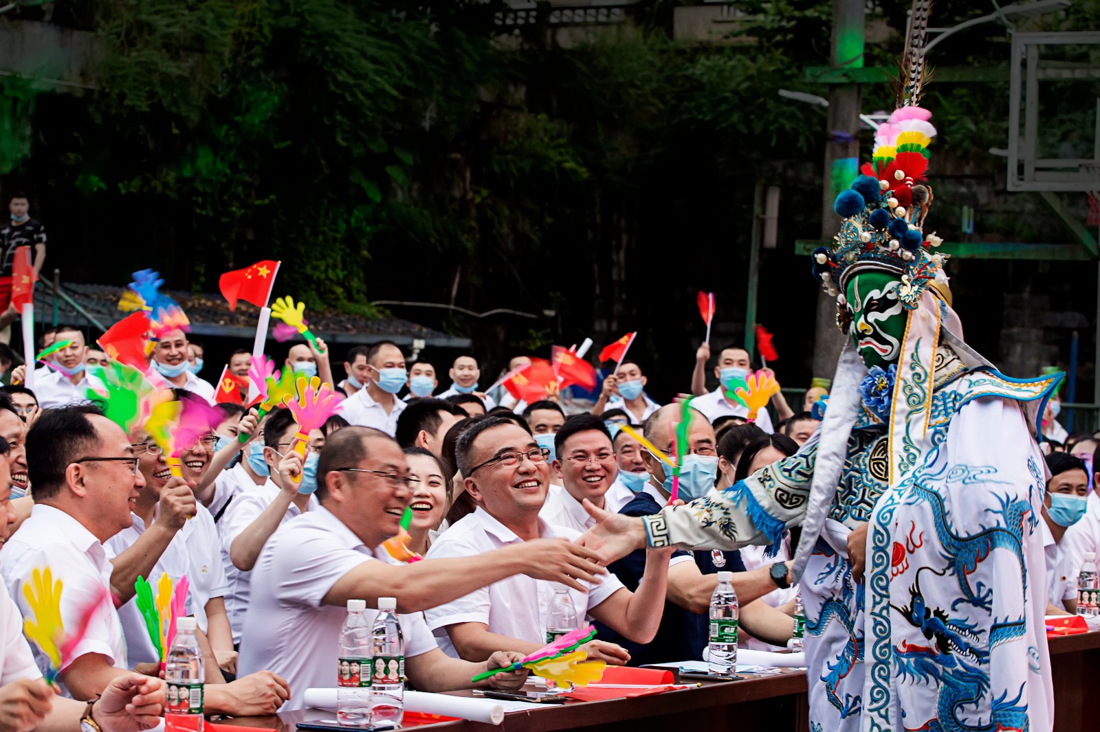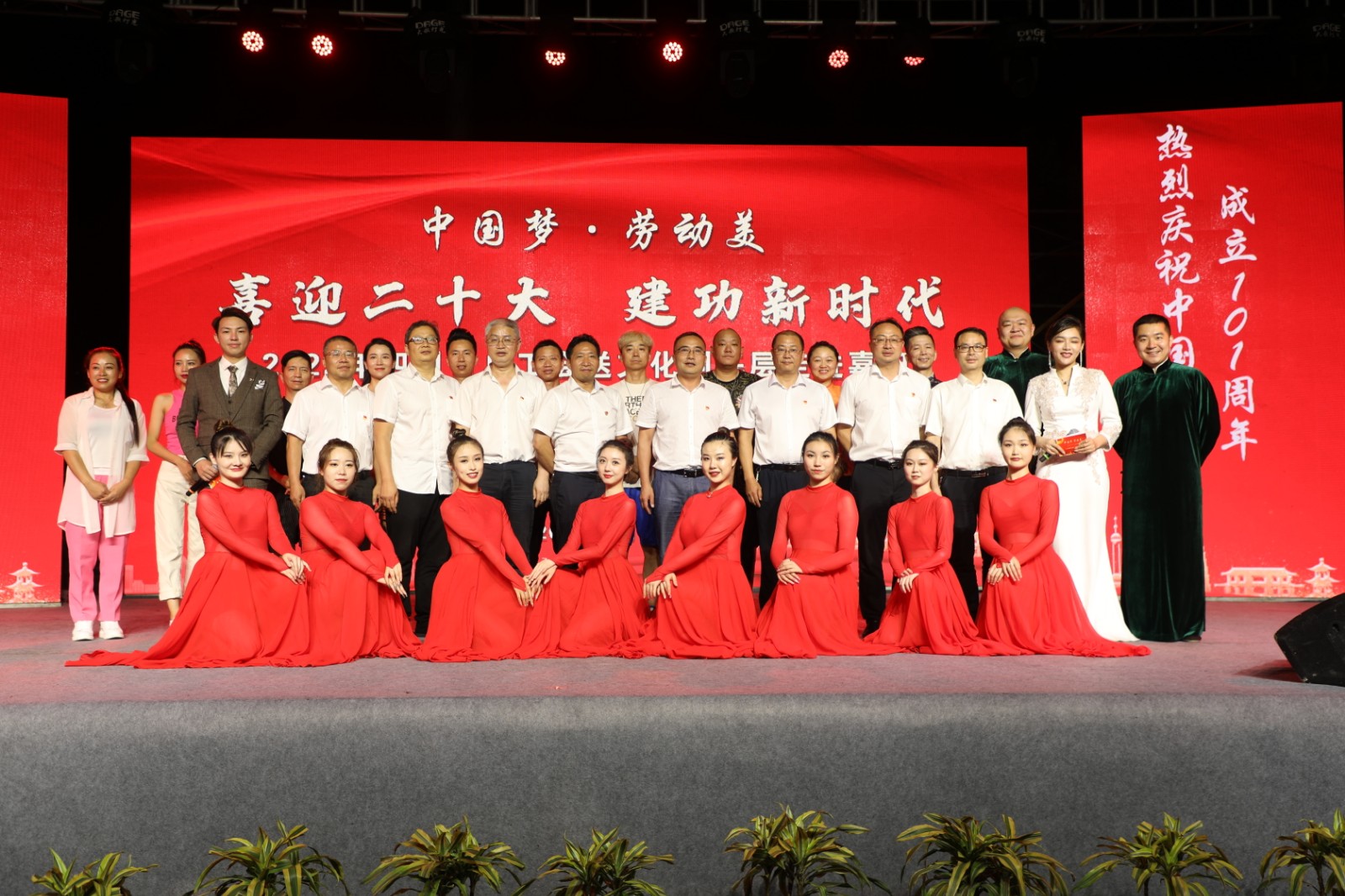 晚会在舞蹈《我和我的祖国》中拉开序幕,女声独唱《不忘初心》、红歌联唱《山丹丹花开红艳艳》、群舞《万疆》为党的101岁生日祝福,现场观看高难度的杂技《征途》更觉惊险和精彩,节目川剧《变脸》《机器舞》《我是大民星》等互动性节目让台下观众也有满满的参与感,二人相声《赞歌献给党》、散打评书幽默风趣,整台晚会内容丰富,赢得了观众的阵阵笑声和掌声。
